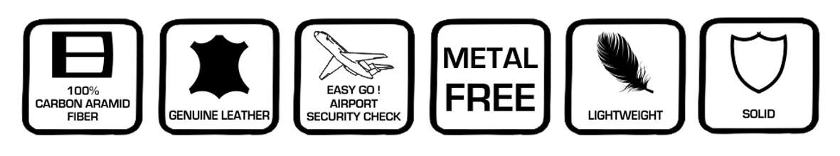 Using hi-technology we handmade exclusive leather belt with carbon-aramid fiber buckle. The properties of carbon and aramid fibers, such as high stiffness, high tensile strength, low weight, high chemical resistance, high temperature tolerance and low thermal expansion, make them very popular in aerospace, civil engineering, military, and motorsports, along with other competition sports. 100% metal free !