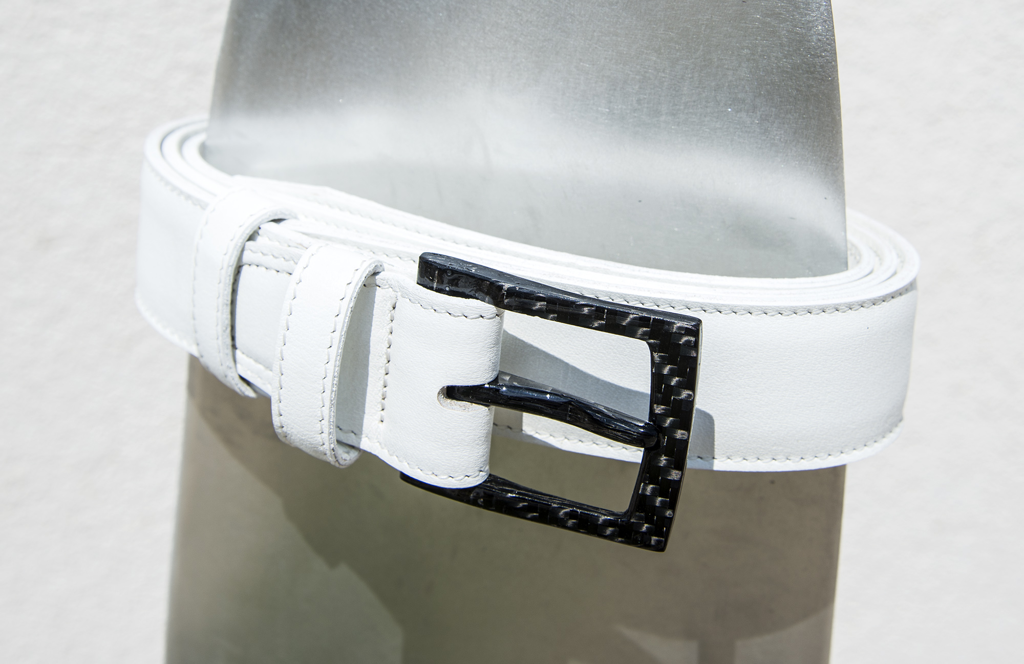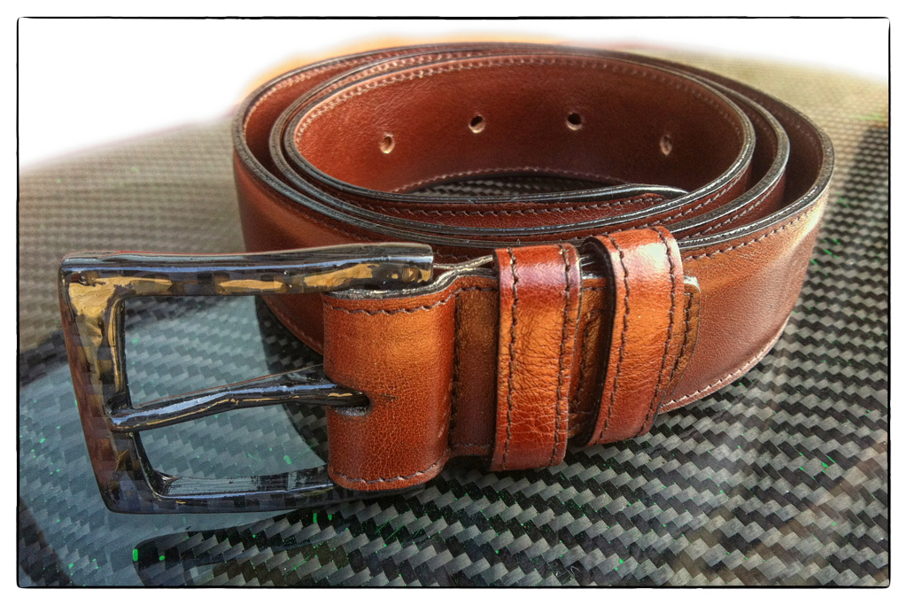 Using hi-technology we handmade exclusive leather belt with carbon-aramid fiber buckle. The properties of carbon and aramid fibers, such as high stiffness, high tensile strength, low weight, high chemical resistance, high temperature tolerance and low thermal expansion, make them very popular in aerospace, civil engineering, military, and motorsports, along with other competition sports. 100% metal free !